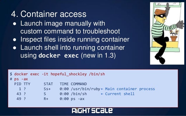 This also makes onboarding a snap: you run `bin/setup`, and your Mac or Linux box is good to go. And, because that script gets used every time the CI system spins up a build, it will never go out of sync with reality. The problem is that if you're building images a lot, Docker doesn't cache COPY calls because it doesn't know if the file has changed or not when calling the COPY command. So if you constantly build images and there are a lot of computationally intensive tasks within those scripts, but you've only changed one small item near the end of the script, your build time may be significantly longer by using the script than by putting it directly in the Dockerfile using the RUN command. I build a lot of modules within one of my Docker images for work, and while it doesn't change often, I would really not like to wait the 20 minutes if I really needed to push to production when I only change some certificate population segment at the end of the Dockerfile or something after a particularly intensive module build RUN step. It never gets out of sync, until somebody gets tripped up by some idiosyncracy of running the server directly on their machine instead of through Docker. One of the original benefits of containers is in its potential to reduce the disparity between dev and prod.